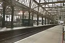 Between 1901 and 1905 the original station was rebuilt.[4] The station was extended over the top of Argyle Street, and thirteen platforms were built.[4] An additional eight-track bridge, the Caledonian Railway Bridge, was built over the Clyde,[4] and the original bridge was raised by 30 inches (0.75 m).[13] Bridge Street station was then closed.[4]