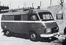 In 1974, Glasgow Salvage Corps received a custom long-wheelbase van from Mercedes-Benz. This was a 'First Aid/Strike DCU' with the registration number JGD 277N. The bodywork of the van was produced by Aiken of Linlithgow Ltd and had a large water tank underneath the false floor inside.