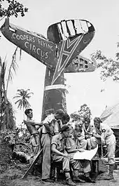 In 1940 Cooper was recalled from the Citizen Air Force (the RAAF reserve) and promoted to flying officer. Engaged in instructor duties throughout 1941, in July 1942 he undertook fighter pilot training and was posted in quick succession to No. 23, 83 and 86 squadrons to gain operational experience. In September 1943, he took command of No. 80 Squadron, which was then operating Kittyhawks. The squadron supported units of the Australian Army during the New Guinea Campaign, and Cooper, having been made temporary squadron leader on being put in command of the squadron, was awarded the Distinguished Flying Cross in 1944.[2][1]