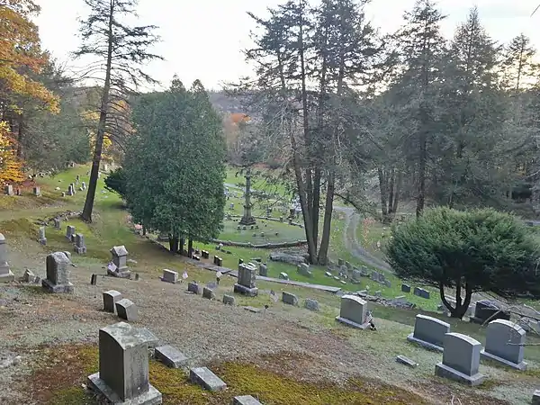 Members of prominent families—Appley, Dimmick, Greene, Lord, Searle, Torrey, and Young—are buried at Glen Dyberry. About 4,000 people were buried in the cemetery as of 1947.[2] Soldiers who fought in the War of 1812 and the American Civil War are buried there.[1]