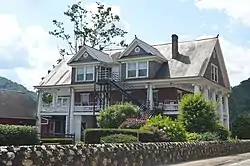 Glen Ferris Inn, also known as Stockton's Inn, Stockton's Tavern, and Hawkins's Hotel, is a historic hotel located on the bank of the Kanawha River overlooking Kanawha Falls at Glen Ferris, Fayette County, West Virginia. It may have been built as early as 1815. It is a T-shaped brick building in two sections. One section is a three-story, painted brick dwelling. The second is a two-story, red brick wing measuring 140 feet by 40 feet. The building features a wraparound porch supported by 13 stuccoed brick columns. In the 19th century, the building was a stagecoach stop and served as a Union quartermaster's depot during the American Civil War. In the first half of the 20th century, it housed managers, supervisors, and workers involved in developing the area's manufacturing and hydro-electric capacity.[2]
