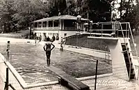The surrounding property and spring were purchased by Gainesville businessman Cicero Addison Pound Sr. in 1924. Architect Guy Fulton designed the first pool and springhouse which was built soon after.[2][4][5][7] The swimming team from the University of Florida even practiced there around 1929[4] before the university pool was constructed in 1930. At that time, Northwest 23rd Boulevard was known as Glen Springs Road.[5] Pound's son stated that Glen Springs was the “only (public) place to swim near Gainesville”[2] until the pool at Westside Park was completed in 1966.[2] Glen Springs was, however, a segregated swimming area, open only to whites.[8][9][10]