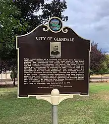 After construction of a railroad line south from Roseburg in 1881–83, Solomon Abraham, the local right-of-way agent, platted the community and named it "Julia" after his wife. After a dispute with Abraham, A. F. Morris, the chief engineer for the railroad, changed the name to "Glendale". A Julia post office was established in February 1883, and its name was changed to Glendale in August of the same year. L. D. Montgomery was the first postmaster. Fire destroyed much of Glendale's business district in 1928. Glendale was quickly rebuilt.