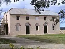 At the rear of the house there is an imposing two-storey brick building that may have been used for stables, barn or even as another dwelling house. The symmetrically placed recesses and openings on the ground floor with their semi-circular arches suggest that this building was erected at a later date than the house, possibly in the 1820s or 1830s.[8][1]