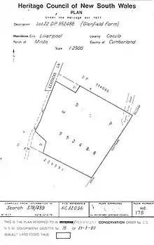 1. 1 2 3 4 5 6 7 8 9 10 11 12 13 14 15 16 17 18 19 20 21 22 23 24 25 26 27 28 29 30 31 32 33 34 35 36 37 38 39 40 41 42 43 44 45 46 47 48 49 50 51 52 53 54 55 56 57 58 59 60 61 62 63 64 65 66 "Glenfield Farm". New South Wales State Heritage Register. Department of Planning & Environment. H00025. Retrieved 1 June 2018. Text is licensed by State of New South Wales (Department of Planning and Environment) under CC-BY 4.0 licence.