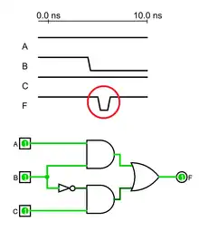 A glitch (circled in red) occurring during circuit operation.