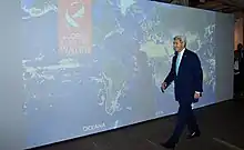 Secretary Kerry Heads to the stage to deliver remarks at the Global Fishing Watch Preview Reception at the Long View Gallery in Washington. (29661895376)