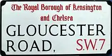 Gloucester Road (/ˈɡlɒstər/ ⓘ GLOST-ər; B325) is a street in the Royal Borough of Kensington and Chelsea, London. It runs north–south between Kensington Gardens (at which point it is known as Palace Gate) and Old Brompton Road.