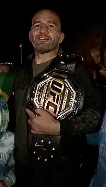 Glover Lucas Teixeira[5] (Portuguese pronunciation: [ˈɡloveʁ tejˈʃejɾɐ]; born 28 October 1979) is a Brazilian-American retired professional mixed martial artist. He competed in the Light Heavyweight division of the Ultimate Fighting Championship (UFC), where he is a former UFC Light Heavyweight Champion. Teixeira is a former member of the Brazilian National Wrestling Team and has competed in the WEC, Impact FC, PFC and Shooto. He is the second oldest UFC champion in history behind Randy Couture and the oldest first time champion in UFC history.