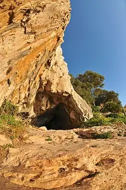 The Goat's Hair Twin Caves are a pair of sea "twin caves" situated on the eastern side of Gibraltar. This name was given to them as it was a goatherd refuge in the 19th century and this meant a large amount of goat's hair found attached to the cave walls. This site's original name is Sewell's Fig Tree Caves after Captain Sewell, who was also the discoverer of what is now often referred to as Cave S or Sewell's Cave. In 1867 these caves were explored and partly excavated by Captain Brome, a well-known explorer of Gibraltar's caves at the time.[1]