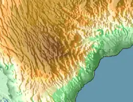 The Goda Mountains lie northwest of the Gulf of Tadjoura, Tadjoura Region in Djibouti. They rise to 1,750 metres (5,740 ft) above sea level and are the nation's largest heavily vegetated area and is the second highest point in Djibouti. The name Goda in Afar means "twisted" or "devoured" and refers to a ridge. A part of the mountains is protected within the Day Forest National Park, Djibouti's only national park.[1] The ecology of this landform is considered an isolated outlier of the Ethiopian montane forest ecological zone, an important island of forest in a sea of semi-desert.