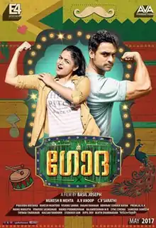 Godha (transl. Arena) is a 2017 Indian Malayalam-language sports comedy film directed by Basil Joseph and written by Rakesh Mantodi, and jointly produced by AVA Productions and E4 Entertainment. The film stars Tovino Thomas, Wamiqa Gabbi, Aju Varghese and Renji Panicker. The plot follows Aanjaneya Das, son of a gatta gusthi coach, who brings home Aditi Singh, a Punjabi wrestler. Godha was released on 19 May 2017.[2][3]