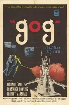 Gog is a 1954 independently made American science fiction film produced by Ivan Tors, directed by Herbert L. Strock, and starring Richard Egan, Constance Dowling (in her final big-screen role), and Herbert Marshall. Gog was produced by Ivan Tors Productions and was filmed in Natural Vision 3D. The color process is credited to Color Corporation of America. The film was distributed by United Artists.[1]