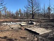 The Gold Fire was a wildfire that burned during the 2020 California wildfire season south of Adin along Highway 139 in Lassen County, California in the United States. Igniting on Monday, July 20, on the east side of Highway 139 in rural landscape, the fire expanded to 21,870 acres (8,850 ha) and destroyed thirteen structures while also damaging an additional five.[2]