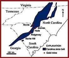- ↑ US Geological Survey: Carolina Slate Belt Gold Deposits