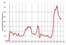 - ↑ "Gold mine production". Goldhub. London: World Gold Council. 4 April 2019. Retrieved 21 January 2020.