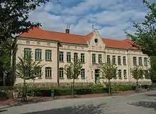 Goldberg owes its origin and name to a gold mine in the neighbourhood, which, however, has been wholly abandoned since the time of the Hussite wars. The town obtained civic rights in 1211. It suffered heavily from the Tatars in 1241, from the plague in 1334, from the Hussites in 1428, and from the Saxon, Imperial and Swedish forces during the Thirty Years' War. On 27 May 1813 a battle took place near it between the French and the Russians; and on the 23rd and 27 August of the same year fights between the allies and the French.[2]
