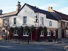 The first record of the pub was in 1773. The core part of the building was constructed in the early 19th century. In 1883, a house for the publican was constructed by Benson & Minks, adjoining the pub. The pub was sold to Braime's Brewery in 1884, and this in 1902 was taken over by John Smith's Brewery. In 1929, the pub was constructed by their architect Bertram Wilson. He combined the two buildings, raised the ceiling height in the older part of the building, and decorated the front of the pub.[1][2]