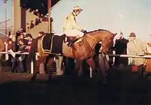 Golden Cygnet & Niall Madden at Naas before the Slaney Hurdle in January 1978