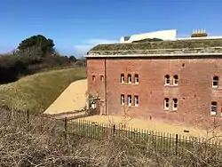 Golden Hill Fort was a defensible barracks at Freshwater, Isle of Wight, England, built as part of the Palmerston defences by the 1859 Royal Commission on the Defence of the United Kingdom to provide manpower to man the defences at the western end of the Isle of Wight, England. Built in hexagonal form, it accommodated 8 officers and 128 men, and had its own hospital.[1]