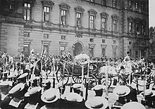 She then travelled by train from Windsor station to Paddington then to Buckingham Palace for a lunch.[5] In the evening, there was a banquet, which fifty foreign kings and princes, along with the governing heads of Britain's overseas colonies and dominions, attended. She wrote in her diary:[9]