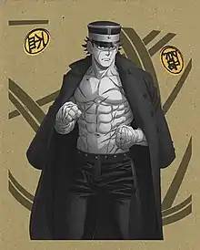 Sugimoto introduces himself to the large Japanese man from the Stenka audience, Maiharu Gansoku, but they speak no further. Through the tavern owner, the Japanese group is asked to throw the fight to have their dog returned, but they angrily decline. Their main opponent at the second Stenka is their target, the tattooed prisoner Gansoku. The bout begins with Sugimoto taking on Gansoku and ends with only Gansoku and the Japanese standing with Sugimoto punch drunk after suffering too many blows to the head. Suddenly, Sugimoto lands a mighty kick on Gansoku, causing a riot. He chases Gansoku into the woods with a hammer and sickle, but so do Koito, Tsukishima, and Tanigaki who find Gansoku being attacked by a wolverine. They all seek shelter in a hut which turns out to be a stiflingly hot banya.[lower-alpha 3] Meanwhile, Cikapasi and Enonoka rescue their dog, but attract the attention of the wolverine. Sugimoto arrives to finish the fight with Gansoku, but with Tanigaki's help, Cikapasi shoots the wolverine. This activity causes the men all fall through the ice into the freezing water and they return to the banya with Sugimoto. The icy water returns Sugimoto to consciousness and they decide not to kill Gansoku, but instead copy his tattoos and suggest he seek refuge further into Russian territory. Epilogue: Asirpa is seen seal hunting with Kiroranke, Shiraishi and Ogata.
