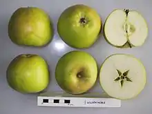 Golden Noble is an old English cultivar of domesticated apple, which is especially used as a cooking apple, since it is resulting in a sweetish puree when cooked and is a good choice for apple sauce.[2]