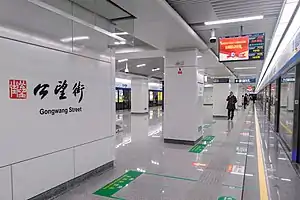 Gongwang Street (Chinese: 公望街) is a metro station on Line 6 of the Hangzhou Metro in China. It was opened on 30 December 2020, together with the Line 6.[1][2] It is located in the Fuyang District of Hangzhou.
