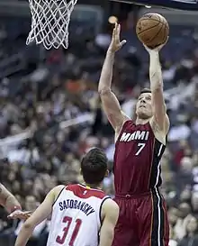 On 28 November 2016, Dragić recorded season highs of 27 points and 17 assists in a 112–104 loss to the Boston Celtics.[34] He topped that mark on 6 December 2016, scoring 29 points (his highest-scoring total as a member of the Heat at the time) in a 114–103 loss to the New York Knicks.[35] Dragić set a new season high six days later, scoring 34 points in a 112–101 win over the Washington Wizards.[36] On 6 February 2017, he scored 33 points and hit a career-high seven three-pointers to lead the Heat to their 11th straight victory with a 115–113 win over the Minnesota Timberwolves.[37]