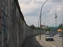 In 1997 Gorbachev told CNN that he did not plan to participate in advertisements again.[11] In 2000, however, Gorbachev was featured in an advertisement made in Vienna by Demner, Merlicek & Bergmann for the ÖBB, the Austrian federal railways. The slogan was "Perestroika in the ÖBB"[19][20] and was filmed at the Wien Floridsdorf railway station. The ad was broadcast on ORF for the first time on May 10, 2000.[21] In 2007, Gorbachev was featured in a photograph advertisement taken by Annie Leibovitz for Louis Vuitton in a car next to remaining parts of the Berlin Wall.[16][22] Unlike the Pizza Hut commercial, this advertisement was shown in Russia.[23]