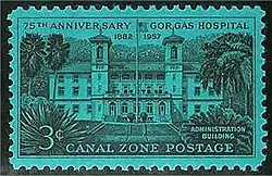 ![]() Canal Zone postage stamp commemorating 75th Anniversary of Gorgas Hospital | |