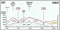 The area is dominated by the Dôme de Barrot, 2136 meters high,[2] dating from the Permian.[5] Former copper mining operations in the Dôme are still visible from the gorge,[6][7] and unique mineral specimens have been found there.[8]