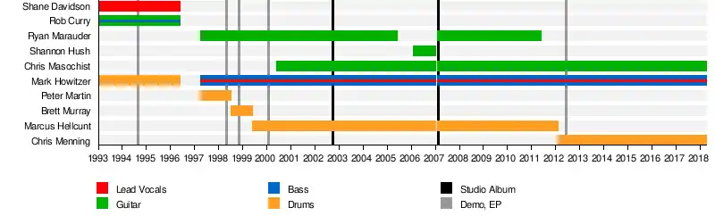 - Mark Howitzer – Bass, Vocals (1997–2007, 2007–2018), Drums (1993–1996)