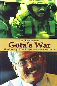 Gota’s War: The Crushing of Tamil Tiger Terrorism in Sri Lanka is book written by a Sri Lankan Journalist C A Chandraprema of Divaina newspaper about the role of Gotabhaya Rajapaksa in ending the Sri Lankan Civil War[1][2][3]
