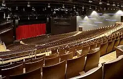 The acoustics of the venue are capable of an average reverberation time of less than 1.1 seconds audio in the room is evenly distributed to within ± 2 decibels (db) from point-to-point and the central console is a digital 96-channel "MIDAS XL 8".[7] The acoustic design of the theater was completed by Theodore Timagenis, an acoustic design consultancy firm founded in 1975.[8]