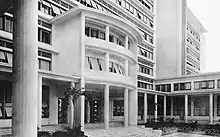 The project to build a new seat for the government of French Algeria was formulated in the context of the 100th anniversary of the Invasion of Algiers in 1830.[2] The complex was built between 1929 and 1934 on a design by architect Jacques Guiauchain, the grandson of one of French Algeria's first colonial architects, Pierre Auguste Guiauchain, and eventually inaugurated in 1933. It encloses an entertainment and cinema venue, the salle des fêtes, which was built in 1929 and is now named after Ibn Khaldun.[1]