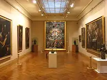 The museum holds 5000 pieces of art comprising 420 French paintings and a collection of 612 weapons.[2] But it is mainly dedicated to Spanish art with the largest collection in France, including 200 paintings,[3][4] against 166 in the Louvre,[5][6] as well as 140 sculptures, coins from Antiquity to the 19th c. and nearly 1000 drawings and prints, like the complete four series of Goya (Caprichos, Disasters of War, Los Disparates and La Tauromaquia), the Gaudí serie by Joan Miró and 83 prints by Salvador Dalí.