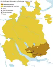 Grüningen bailiwick within the canton of Zürich (as of 1770)
