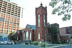 Grace A.M.E. Zion Church is a historic African Methodist Episcopal Zion church located in what was once the Brooklyn neighborhood of Charlotte, Mecklenburg County, North Carolina. It was built in 1901–1902, and is a Gothic Revival style brick church. The front facade features two crenellated entry towers of unequal height with matching Gothic arched entrances. It is one of the oldest of the remaining African American churches associated with Charlotte's historic black districts.[3]