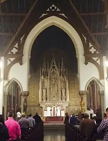 Masses are offered on Sundays at 8:00am and 10:30am (High Mass) with Sunday School, and on many weekdays at 12:10pm. Additional family and youth activities are held weekly and forms of worship including Stations of the Cross and Benediction of the Blessed Sacrament are held during Lent.[12]
