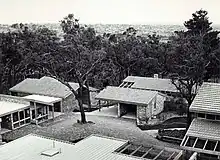 Designed for family living these six concrete block, Brutalist style townhouses, consist of three bedrooms, two living areas and a double carport (now converted to a garage) with an open private courtyard.[6] The building expresses simple construction materials of concrete for the main structure, timber for the roof structure and metal deck as the roof cladding. Off-form concrete balconies project from the concrete block building, with timber handrails.[7]