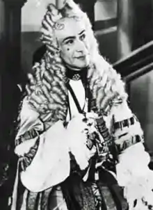 In September 1939, at the outbreak of the Second World War, the British government ordered all theatres to close indefinitely.[9] Rupert D'Oyly Carte cancelled the D'Oyly Carte Opera Company's entire autumn tour and terminated the contracts of all of his performers. When the company started up again at Christmas 1939,[10] Carte's principal comedian, Martyn Green, had accepted another engagement and was not available.[11] At Richard Watson's suggestion Clifford auditioned for the vacancy and was engaged to play Green's roles in the Gilbert and Sullivan operas, which were produced in repertory by the company.[2] He was coached by the company's director, J. M. Gordon, who had worked with W.S. Gilbert, but Carte encouraged Clifford to recreate all his characters afresh.[2] The Times said of his performance in The Yeomen of the Guard, "the final moments in which the heartbroken merryman struggles to hide his grief are played with real beauty. Mr Clifford makes no attempt to imitate his predecessors in the part, and his performance gains immensely as a result."[12] The Times critic, who had seen the original cast of The Mikado, considered Clifford "second to none" as Ko-Ko.[13]