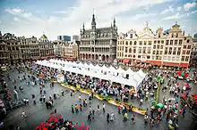 In 1990, the Grand-Place was pedestrianised, a first step in the pedestrianisation of central Brussels, and it is currently part of a large pedestrian zone in the centre of Brussels.[63] The City of Brussels had been thinking about pedestrianising the square and its surrounding streets for several years, but a car park nearby prevented the project from materialising. When its licence ran out in September 1990, the city took the opportunity to conduct a pedestrian experiment. For three-and-a-half months, all traffic was to be banned on the Grand-Place, and also on the adjacent streets. After 1 January 1991, they would decide for good.[60]