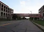 The Packard Plant was a former automotive-manufacturing-facility that crossed over Grand Boulevard; the connecting walkway was destroyed in a windstorm in 2019.[15] The city ruled in 2022, that the Industrial complex undergo an emergency demolition.[16] |