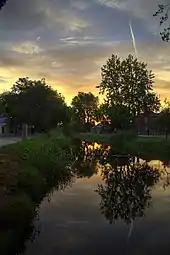 The Grand Canal (Irish: An Chanáil Mhór) is the southernmost of a pair of canals that connect Dublin, in the east of Ireland, with the River Shannon in the west, via Tullamore and a number of other villages and towns, the two canals nearly encircling Dublin's inner city. Its sister canal on the Northside of Dublin is the Royal Canal. The last working cargo barge passed through the Grand Canal in 1960.[1]