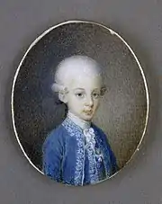 - ↑ Genealogie ascendante jusqu'au quatrieme degre inclusivement de tous les Rois et Princes de maisons souveraines de l'Europe actuellement vivans [Genealogy up to the fourth degree inclusive of all the Kings and Princes of sovereign houses of Europe currently living] (in French). Bourdeaux: Frederic Guillaume Birnstiel. 1768. p. 109.
