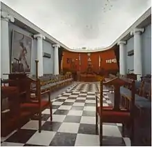Freemasonry in Cyprus may be traced back well into the Ottoman era over 200 years ago.[2] Historical records place freemasons in the Larnaca district, where at that time all consulates were located. Coastal Larnaca was then considered the capital, and is a main port of the island. This is documented by the presence of graves bearing Masonic marks in the enclosure of the Church of Ayios Lazarus, also by the 1751 handwritten manuscript of Petrakis Karydes, and by an 1815 circular against Masons, written by the Archbishop of Cyprus, Kyprianos.[3] It is believed that lodge meetings were held whenever there were sufficient brethren visiting as officers or passengers of ships in port to augment the Masons of the island. However, since Cyprus was then under Ottoman occupation, and even though there were Cypriot Masons who had joined the craft while studying abroad, it was not possible to create permanent lodges.[2]