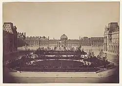 The gardens of what is now the Cour Napoléon with the Tuileries Palace in the background, photographed in 1859
