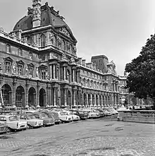 Finance Ministry employees' cars parked in the Cour Napoléon, 1965