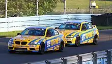 Grand Sport (GS) is a former set of regulations for grand touring race cars, originally by the SCCA for the Canadian Motorola Cup in 1997,[1] then formerly by Grand-Am, and then finally by IMSA, in the Michelin Pilot Challenge (formerly known as the Grand-Am Cup), between 1997 and 2017. It was the quicker of the two classes at the time; the other being the Sport Touring class. Class rules dictated that the cars weigh between 2,900 lb (1,300 kg) and 3,300 lb (1,500 kg), depending on engine displacement, and featured large displacement motors, or smaller motors with forced induction systems. Power output for the class was between about 350 hp (260 kW) and 405 hp (302 kW). The class was later superseded and replaced by more modern FIA GT4 machinery in 2018. Examples of cars that formerly competed in this class include the BMW M3, Pontiac Firebird, Ford Mustang/Mustang SVT Cobra, Nissan 350Z, and the Porsche 996.[2][3][4]